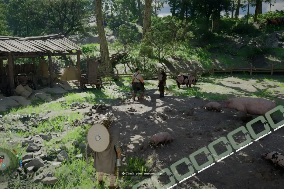 Crimson Desert A Rumor at Glenbright Farm walkthrough: go to Glenbright Farm, investigate the rumor, and meet Ronnie, Brice, and Tranan.