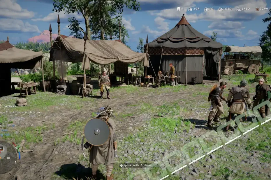 Crimson Desert Trembling Hands walkthrough: talk to Andrew, follow him on horseback, and start The First Steps of Little Marksmen questline.