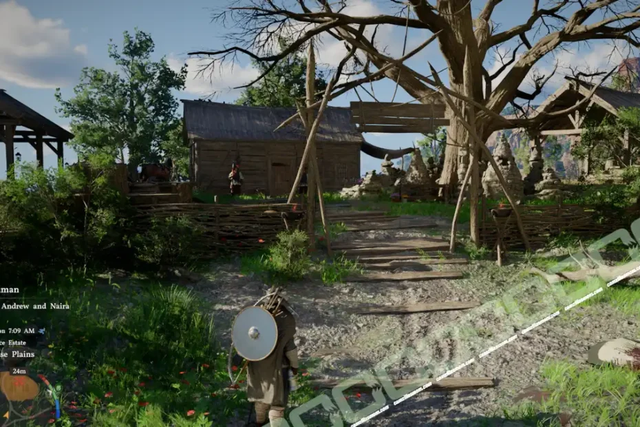 Crimson Desert Nonhuman walkthrough: use the lantern to track the trail and find Andrew and Naira at the farm.