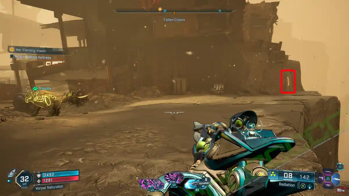 The Fallen Crown in Badlands 4 is a small area in the northwest of Kairos. You will get there during the “Her Flaming Vision” Main Story Mission, and it only has two collectibles. A Dead Bolt and a Vault Symbol.