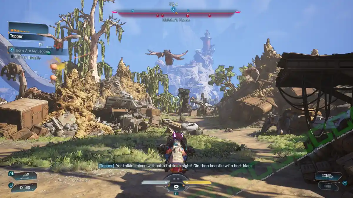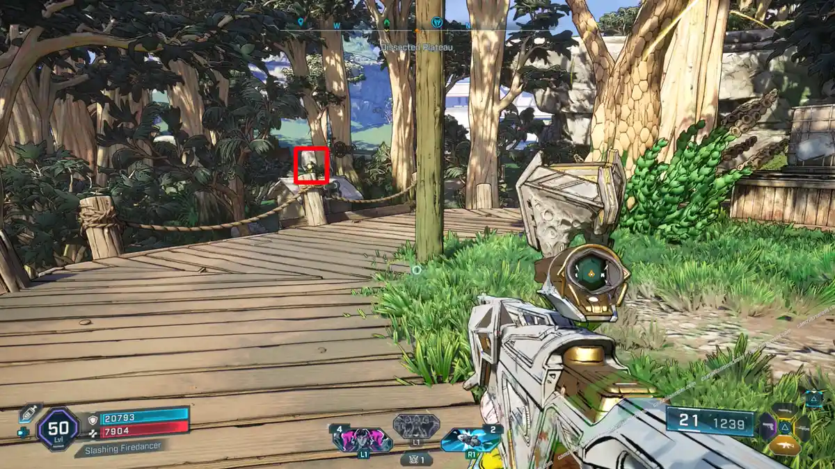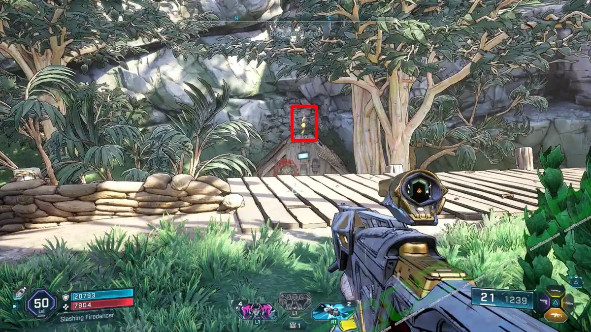 The Vault Hunter’s Guide: The Fields are Alive is attached to a pole in a small settlement by the main road between Synthetic Nave and The Killing Floors.