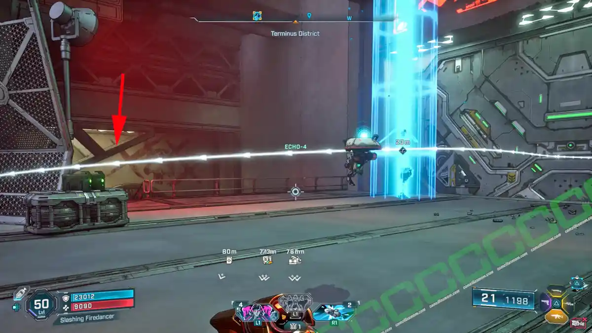 -> Reach labs – ECHO Log 1: Exit the water at the bottom and follow the corridor to a ladder that you can climb up. Here is the first of five ECHO Log collectibles to listen to as optional mission steps.