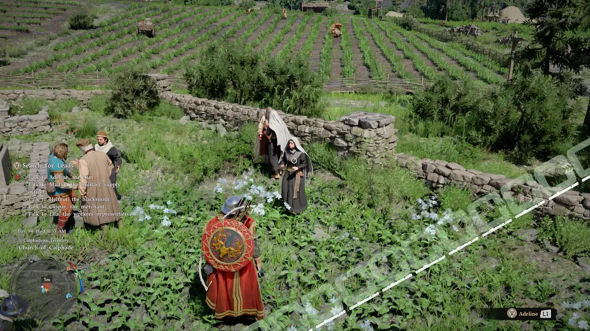 Adeline is a nun at the Church of Calphade. She’s at the graveyard. Adeline can’t think of anyone who would have the time to steal anything since Ella and Helmut are always that busy.