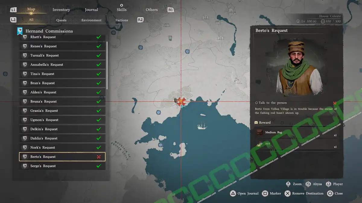 Complete the two Vellua Fishermen’s Guild questlines Beyond the Silent Waves and The Girl Lost in the Mist. As soon as Vellua is liberated and safe, Berto will have a request.
