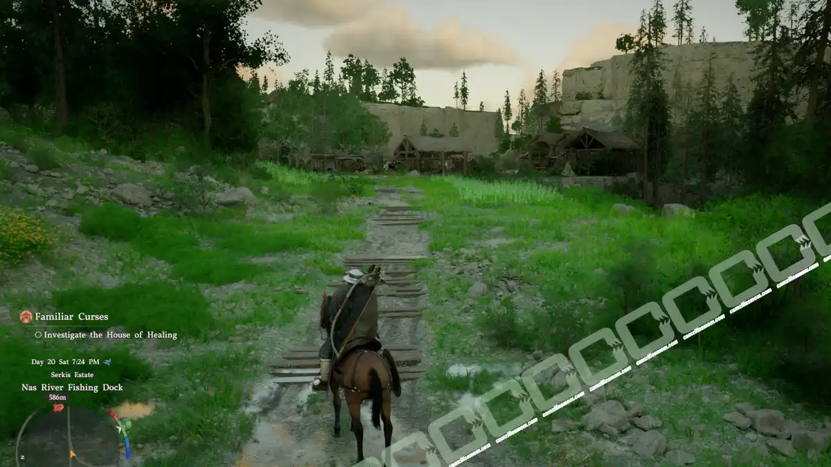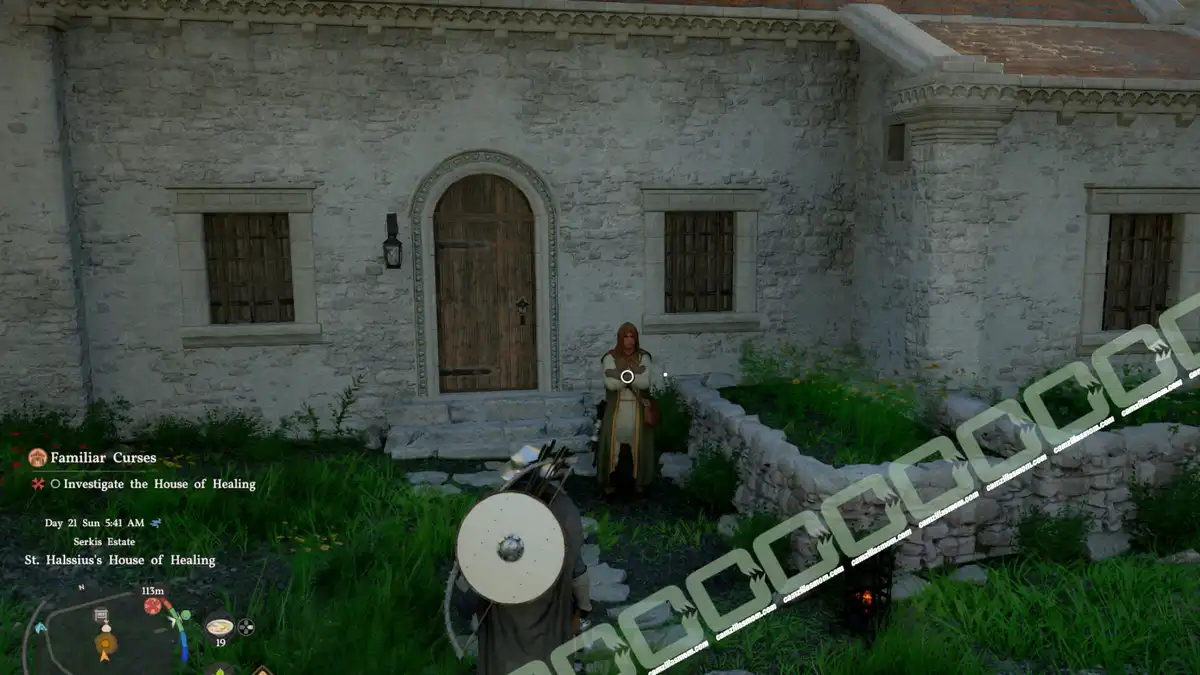 To get to the House of Healing, follow the road past the Bloomwood Ranch and the Nas River Fishing Dock towards the east. If you want to prevent having to return to Hernand for a St. Halssius Visitor Pass, go to the church first.