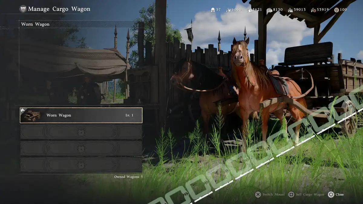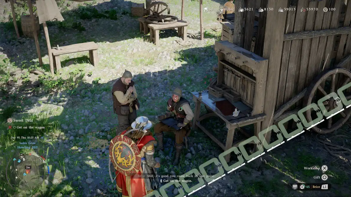 Return to your wagon and drive it to the Royal Trading Post north of Hernand Town, next to the castle. It’s where you had your very first camp in Crimson Desert. After so many times trying to talk to Bentley, the Trade Manager there, he will finally do business with me. The Wagon will disappear, and everything on it is sold.