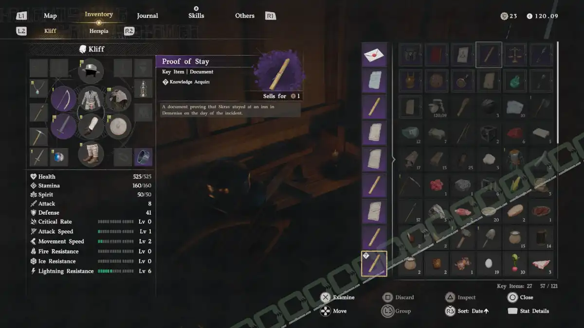 Open your inventory and look for the purple document “Proof of Stay”. Examine it from there.
