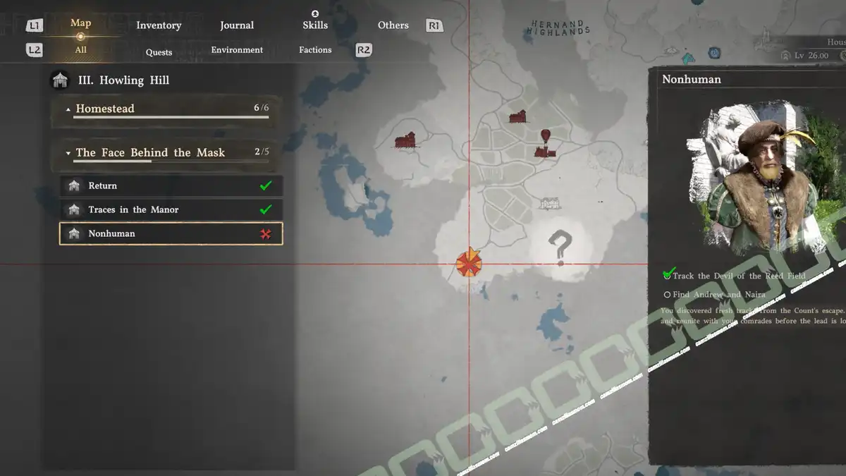 “Nonhuman” is the third quest of the story block “The Face Behind the Mask” in Chapter 3. It starts right after “Traces in the Manor”.