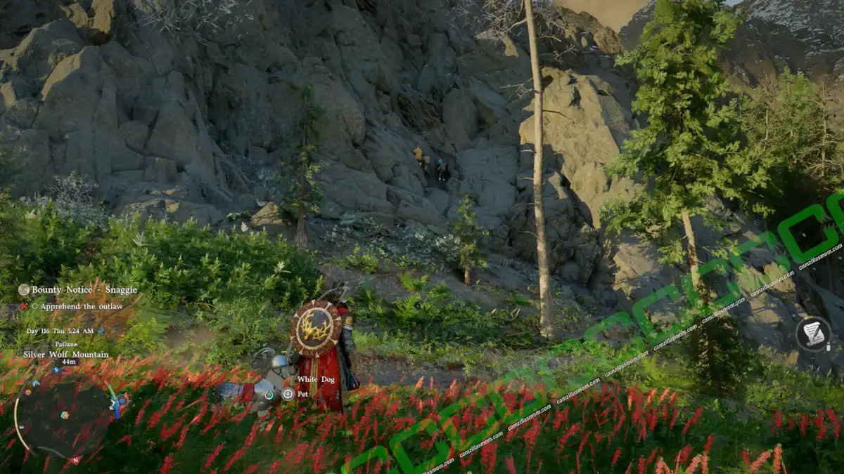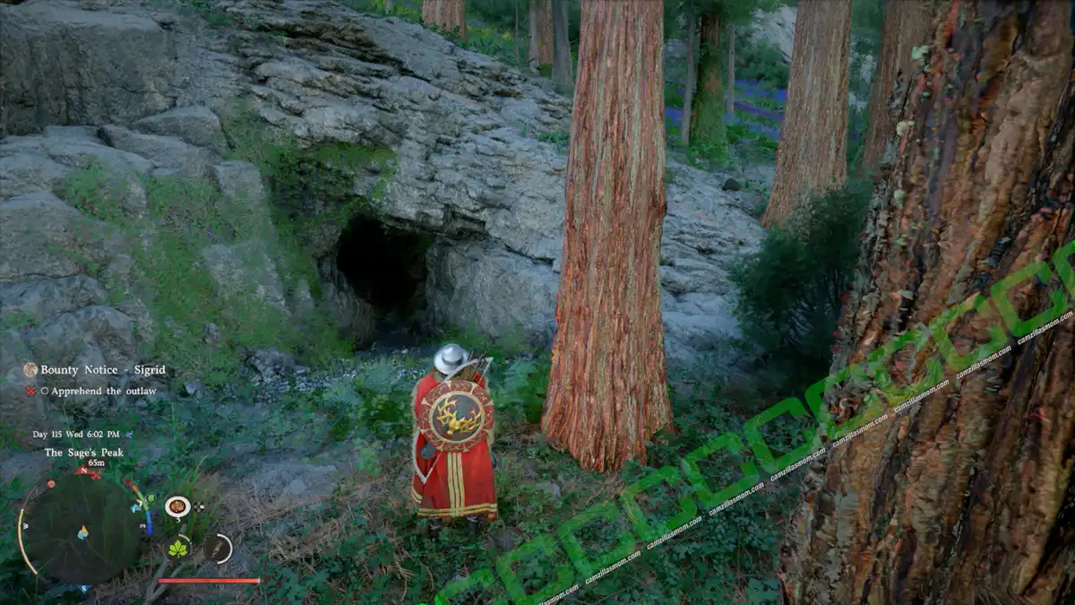 Sigrid is hiding in the Wolf’s Molar Cave. The Cave entrance is west of Sigrid’s Bounty map marker, as shown in the screenshots below. Enter the cave and follow the path inside to find Sigrid’s lifeless body in the first chamber.