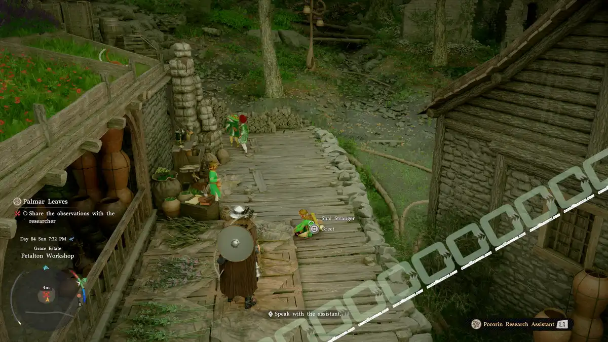 The Researcher is in the south of the village, by the Petalton Workshop.