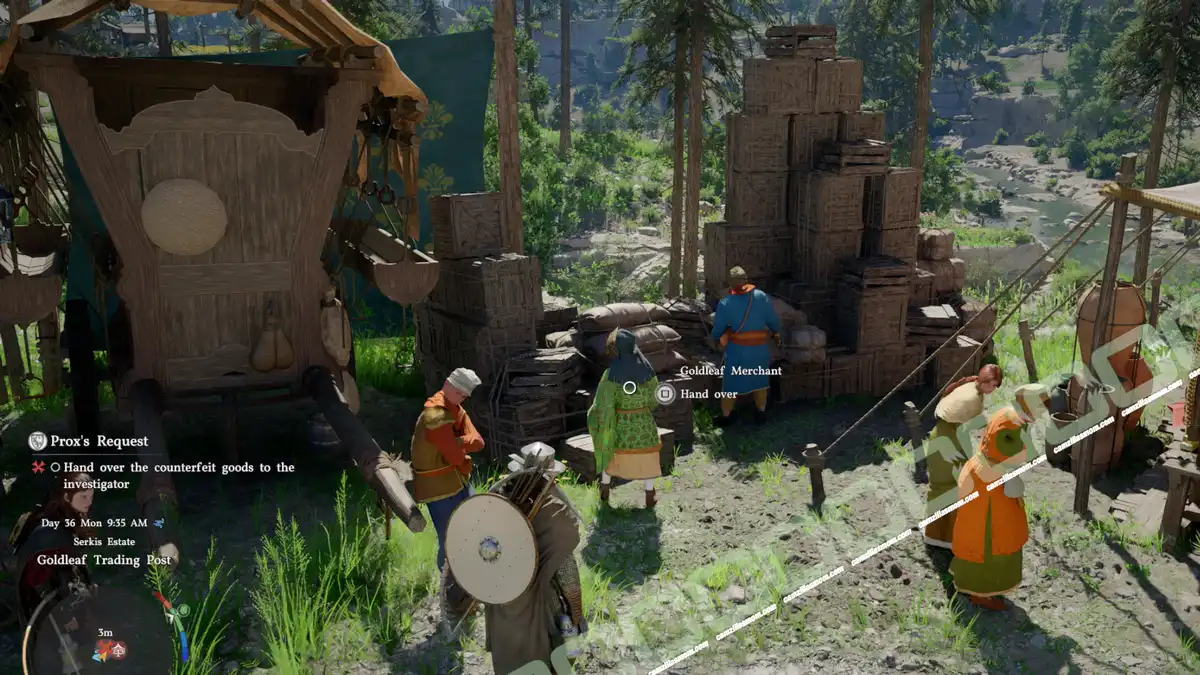 If bandits keep attacking because you haven’t liberated the nearby quarry yet, try to fast travel to the quarry fast travel point and then run straight to the Goldleaf Trading Post. Fast travel resets the place.