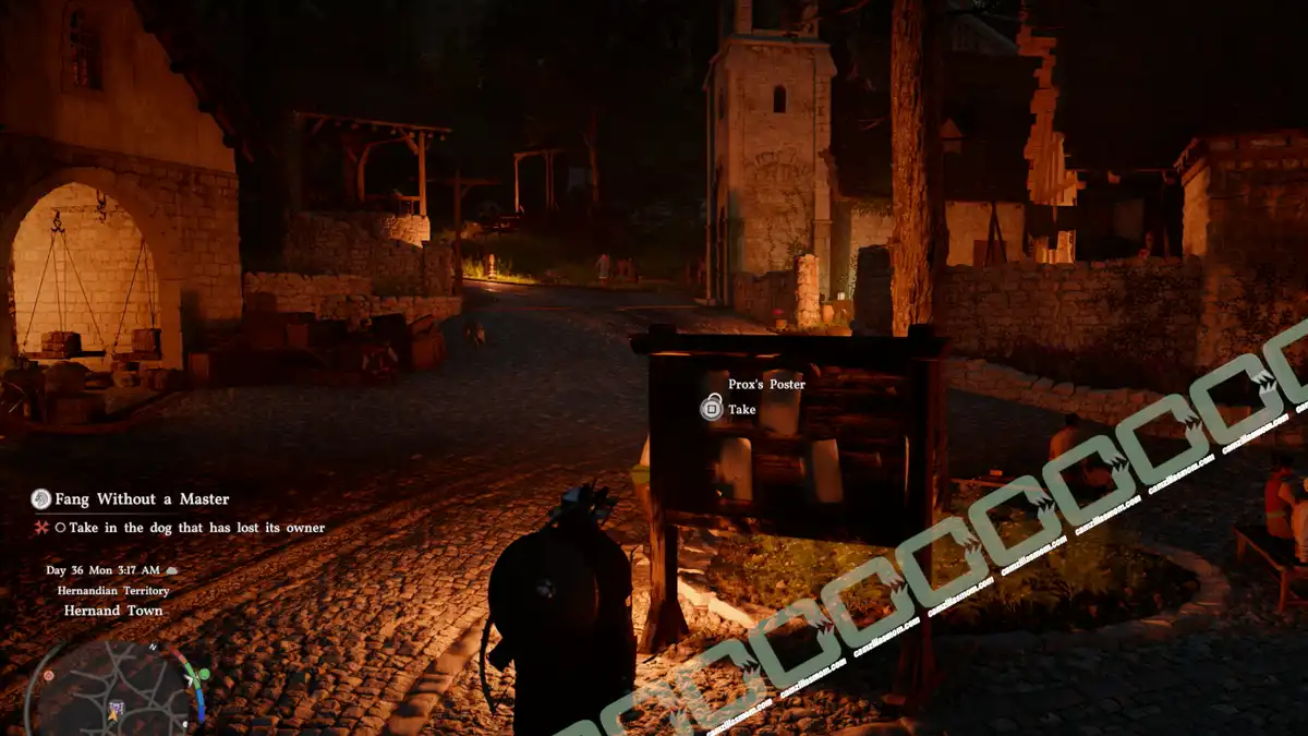 Prox is at the Goldleaf Trading Post north of Hernand town. Talk to him and listen to his request. He wants you to take a package of Calligraphic Paintings to the guild’s investigator.