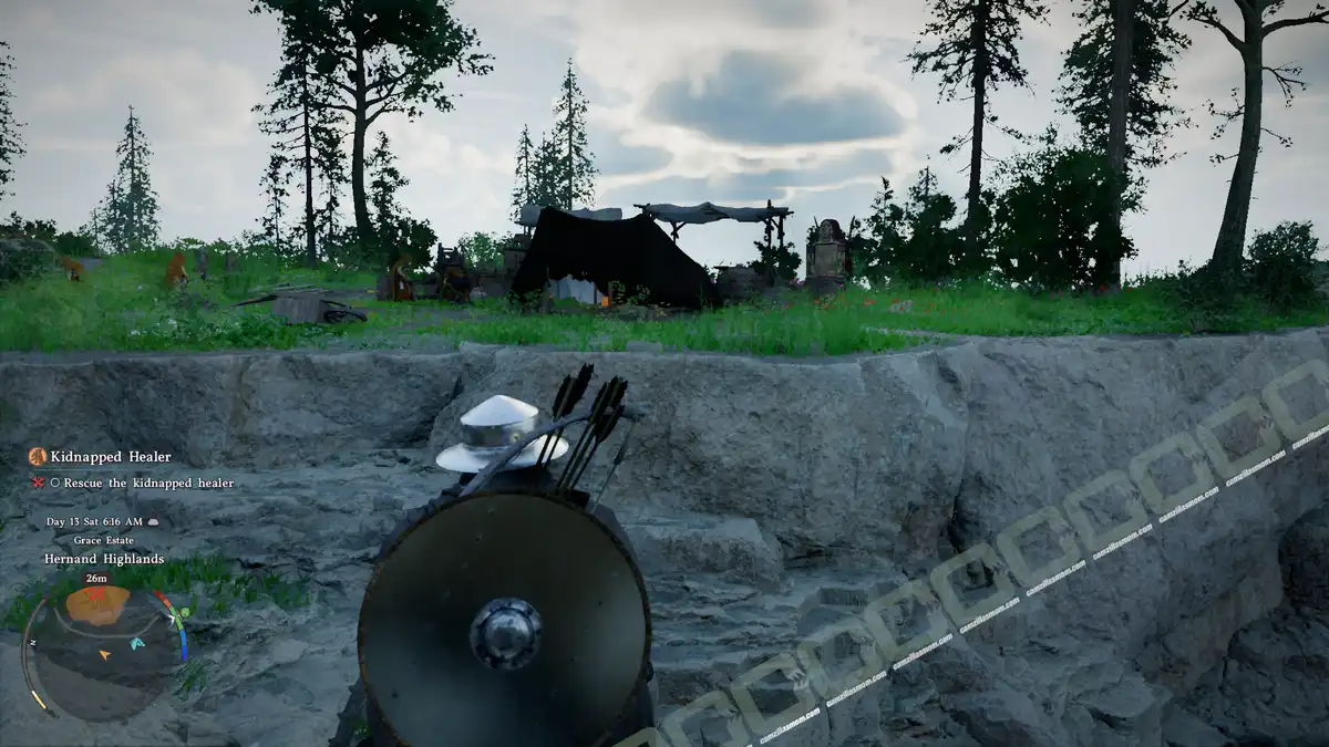 Next, you have to save the healer from the bandits. The Healer’s House is past Specter’s Hideout, the cave you had to investigate in the Quest “Secrets Hidden in the Dark”.