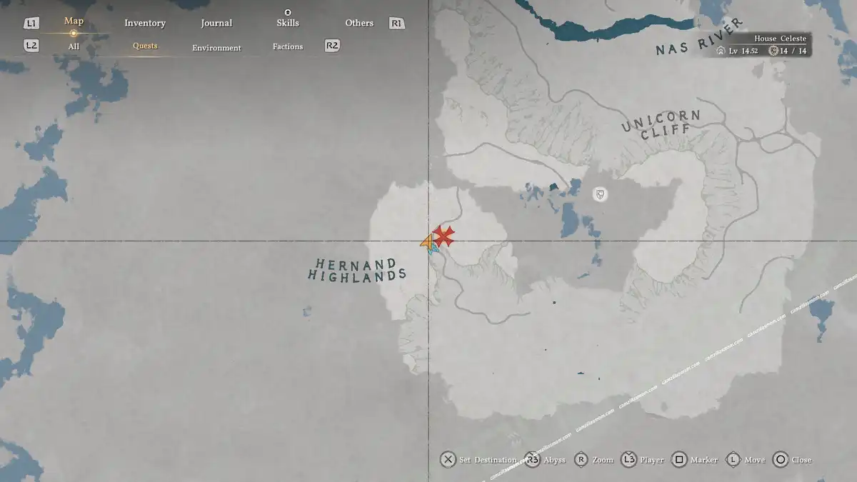 Follow the road to the east and head south at the fork towards the Hernand Highlands. I went through an area with hovering vases, which was a weird experience. If you do the same, be aware that there are aggressive hogs there, too.