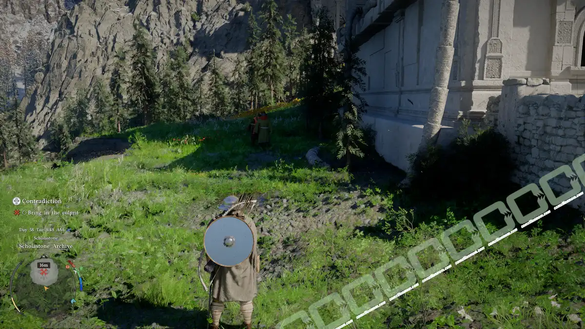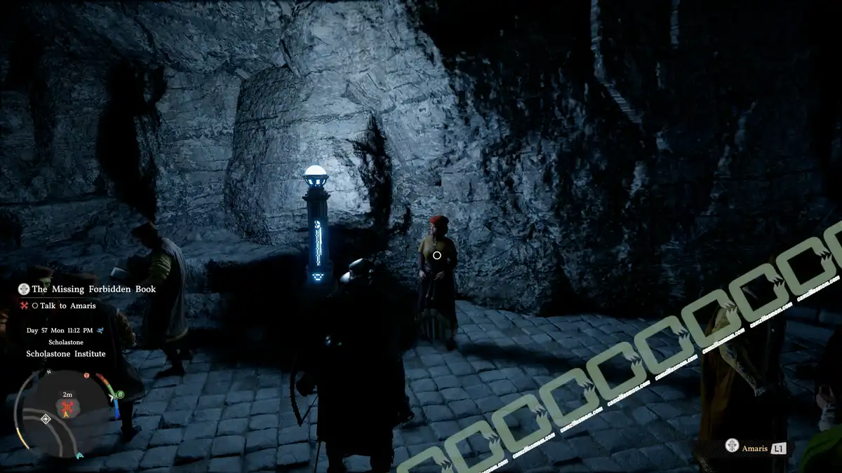 Javier is the culprit. He’s behind a western building in the Institute’s gardens, trying to get rid of the book. Tie him up and carry him to the nearby building. This will complete “The Weight of Knowledge” questline.