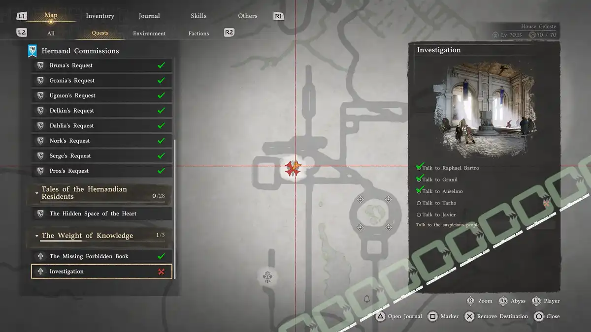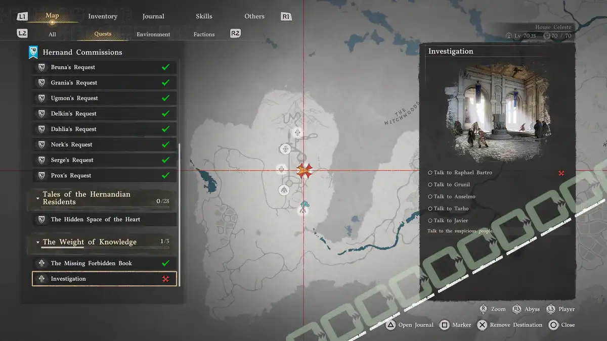 You have now collected all the interviews. Open your Inventory and look for the Investigative Log: The Weight of Knowledge. You can now look at the full log.