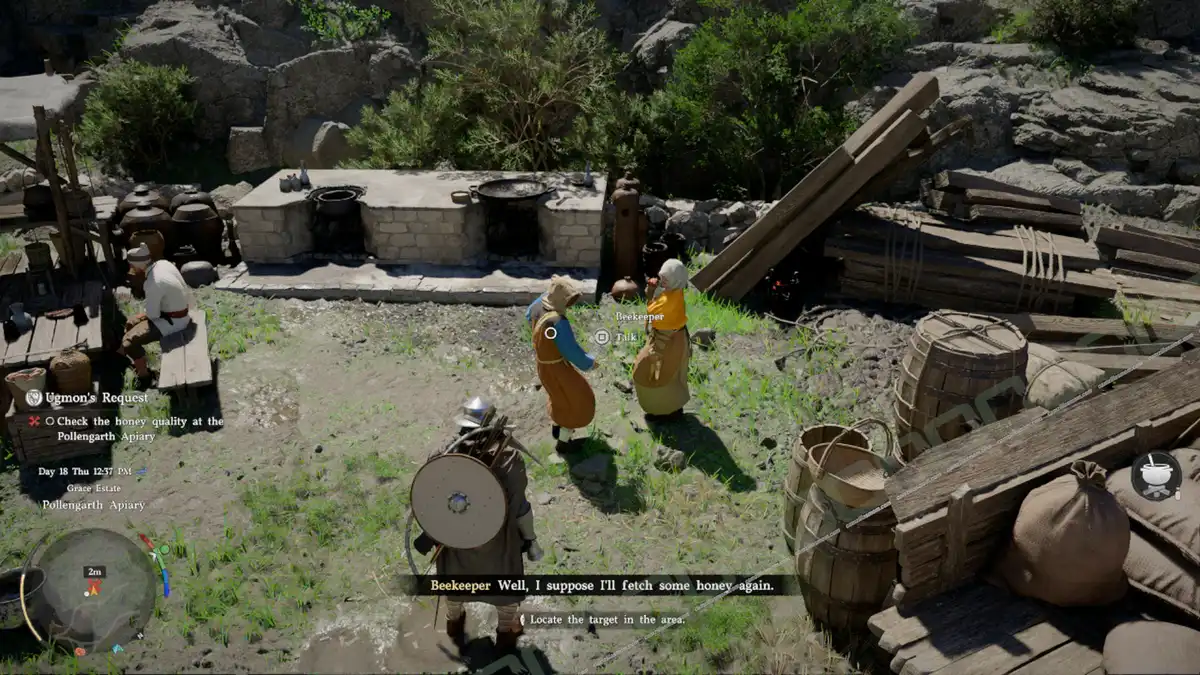 Talk to Ugmon and listen to his request. He feels like there is something wrong with the quality of the honey, and he wants you to go to the apiary.