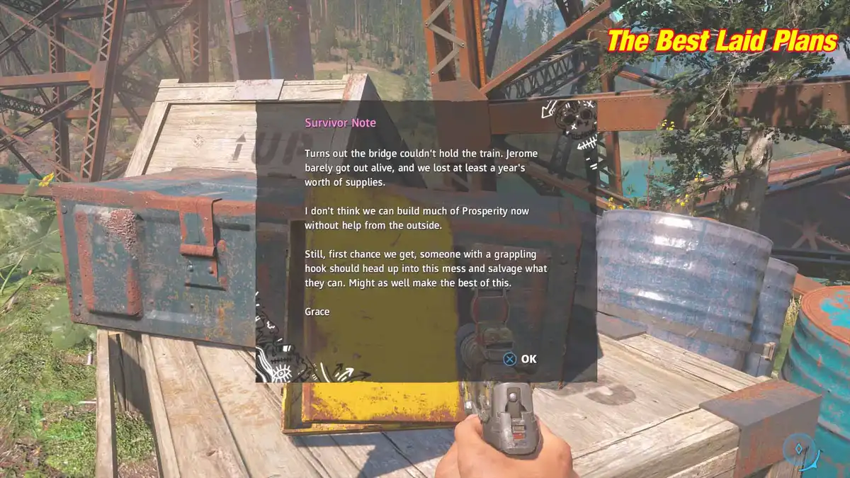 In the Far Cry New Dawn Treasure Hunt: The Best Laid Plans, you have to grapple across a broken bridge to reach the stash. Here’s what to do.