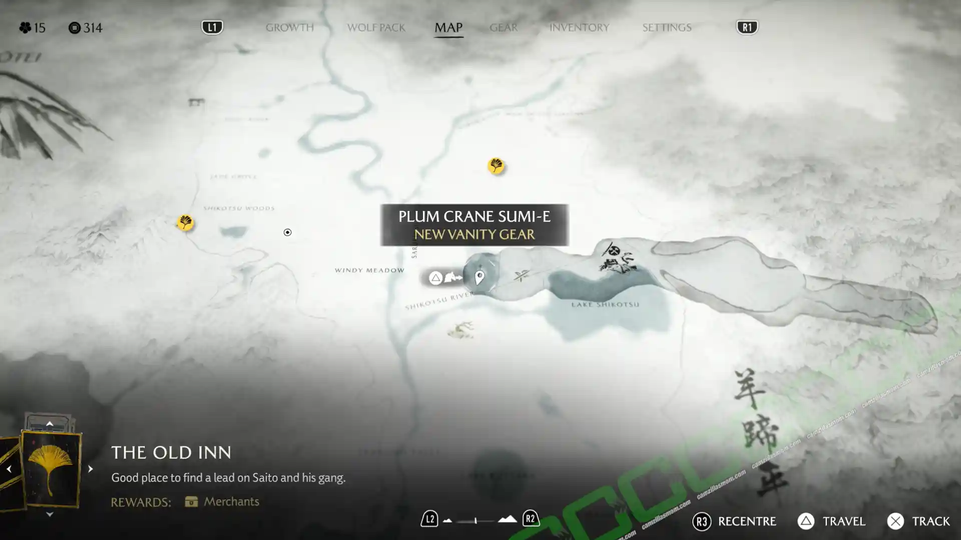 The Plum Crane Sumi-E is west of the Home location in the Yotei Grasslands, by the water.