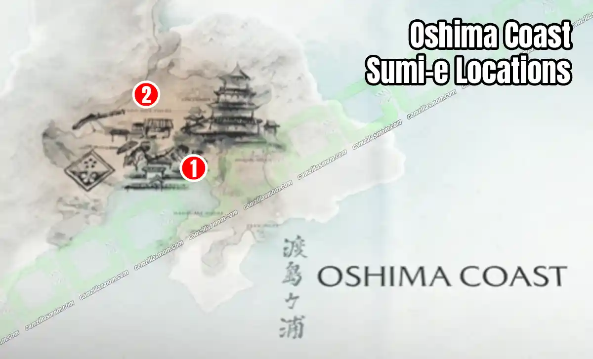 There are two Sumi-e in the Oshima Coast region. The two are highlighted in the overview map below.