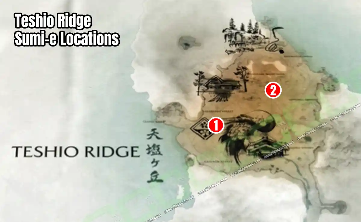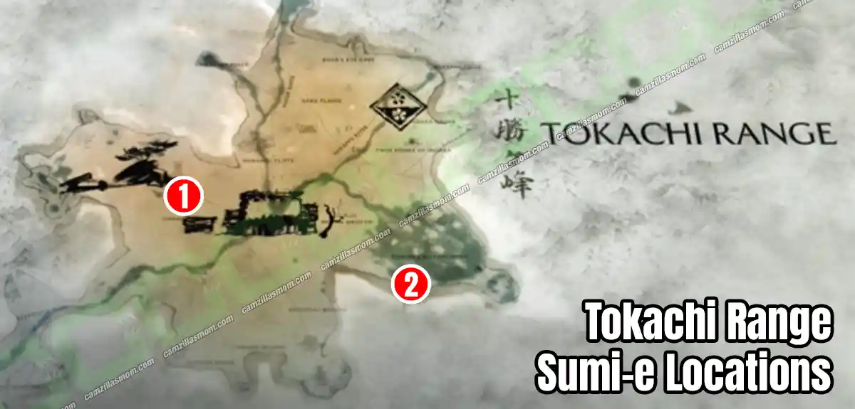 There are four Sumi-e in the Yotei Grasslands region. The two are highlighted in the overview map below. There are two additional ones during “A Memory of Impression” at the home location.