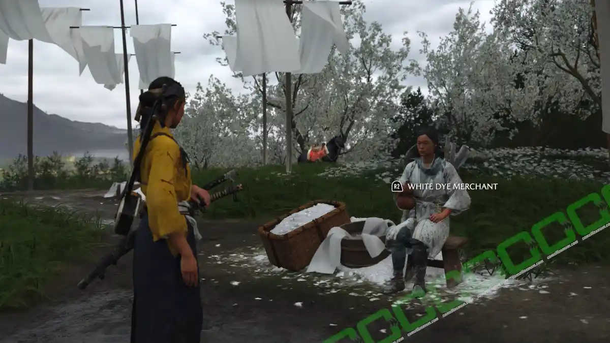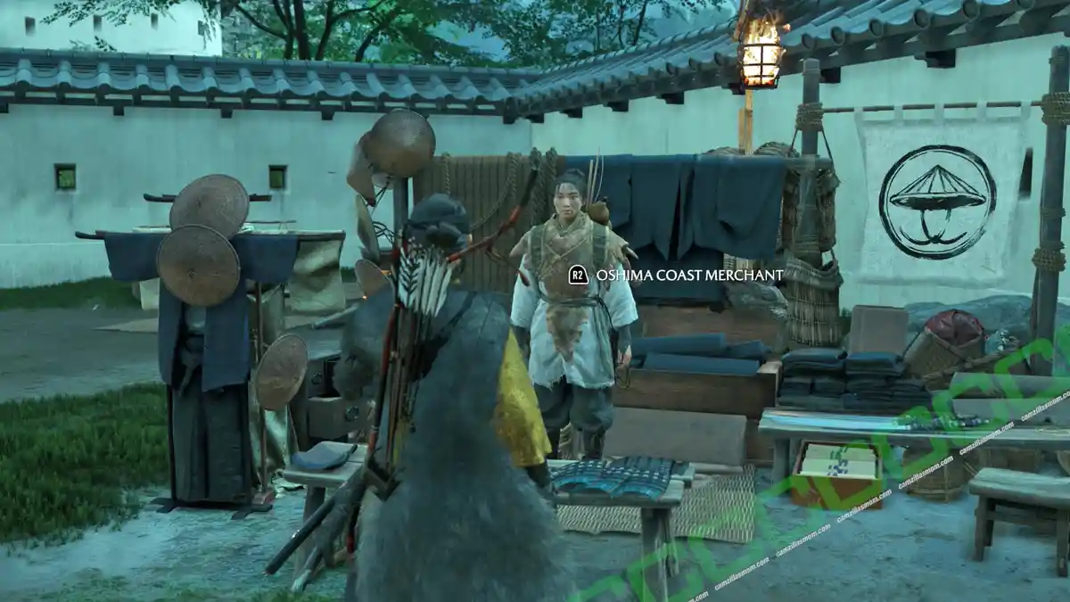 Start a new game with Game+ to find a “Mysterious Merchant” near Atsu’s Home. Here you can buy two more sets of Armour (Oyuki’s and Ina’s), plus weapon kits, armour, shamisen dyes, charms, hats, and masks. All those require “Ghost Flowers,” which can be earned by replaying the game.