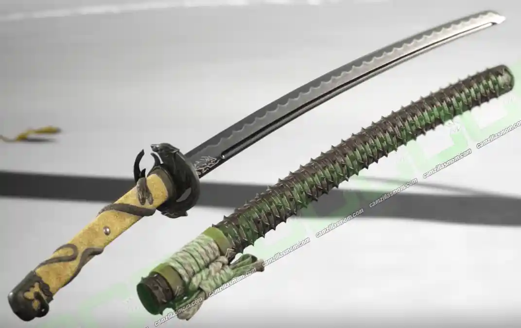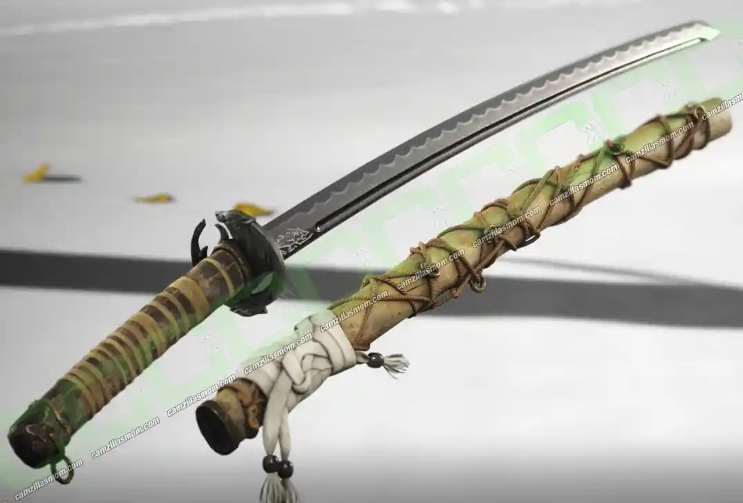 “Once wielded by Sensei Takahashi’s student, a life lost to the Oni Raiders’ cruelty.”