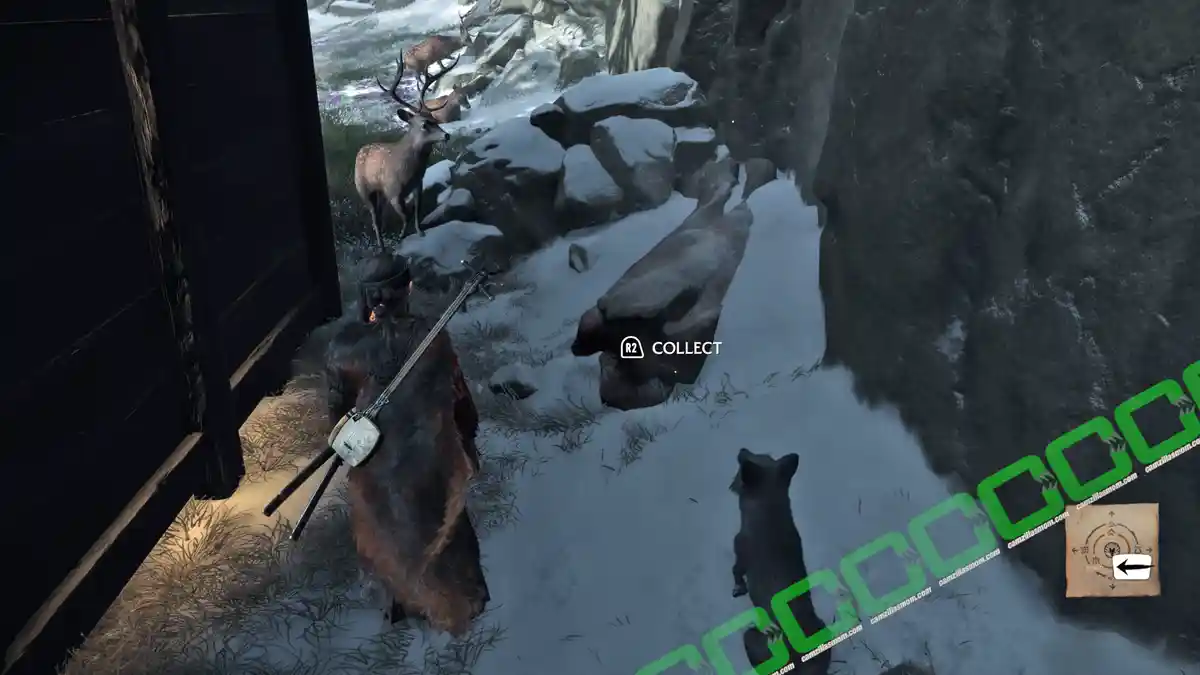 At Tokachi Range, head to the Prospector’s Camp in the east. There is a man with a tame bear called Shino. He will start and complete the quest “The Loss We Carry”. The quest giver will leave the Prospector’s Camp, leaving the tame bear behind. Feed the bear twice and follow him to a buried weapon kit.