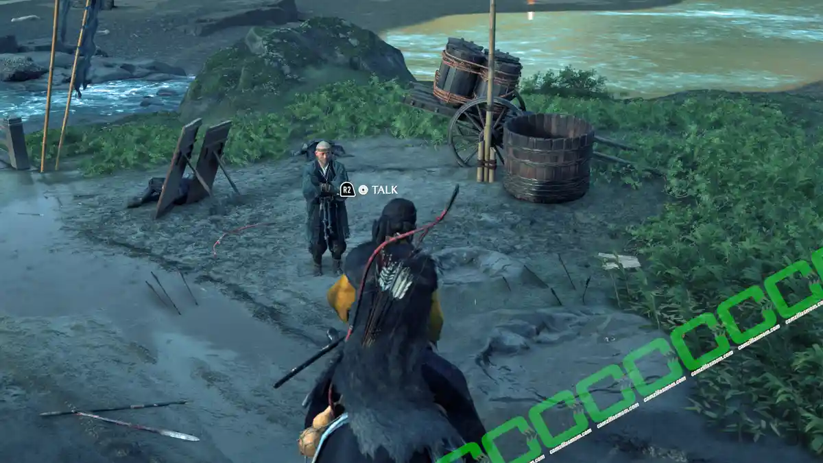 Follow Daijiro into the inn to the attic to gamble with him. Win and defeat the Ronin. Then free Daijiro at a camp called Nupur River Campsite near Horusaru Falls. Ambush Saito’s men, together with Daijiro, at the same camp. Then return to Huranui’s Rest to receive the armour. He has his stash not far from the bounty board.