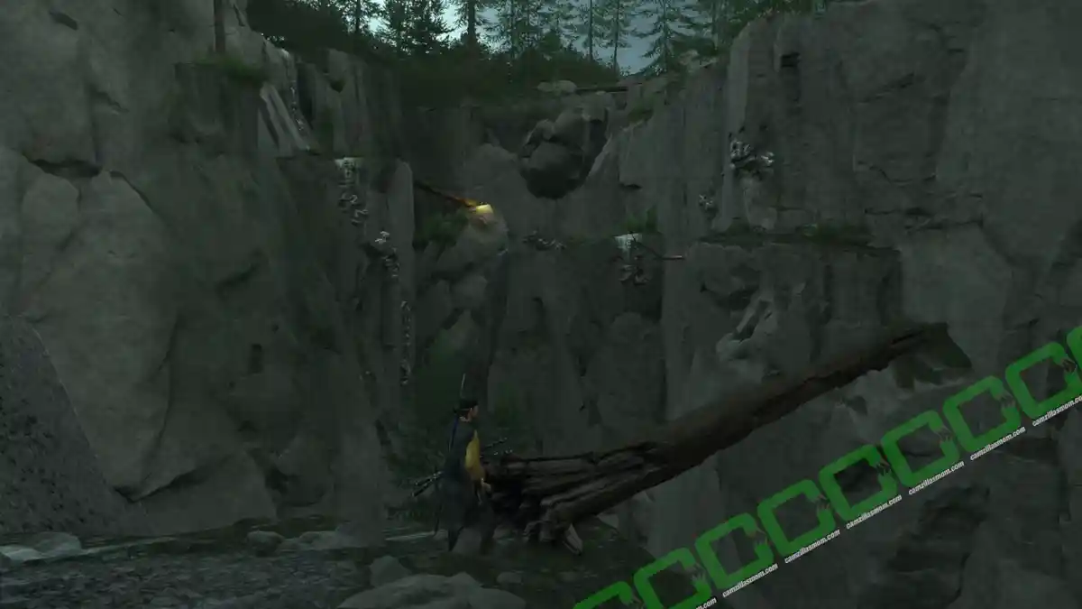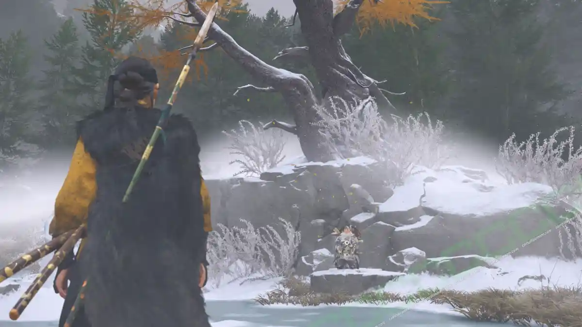 Follow them and fight the Nine Tails when they appear. Interact with the swarm to continue. They will lead you to a climbable wall up to an abandoned house. Examine the hunting gear near the tree stump, and inside, read the note.