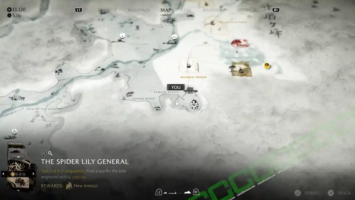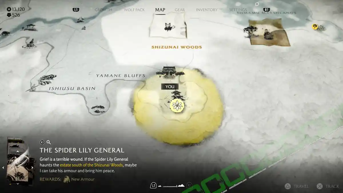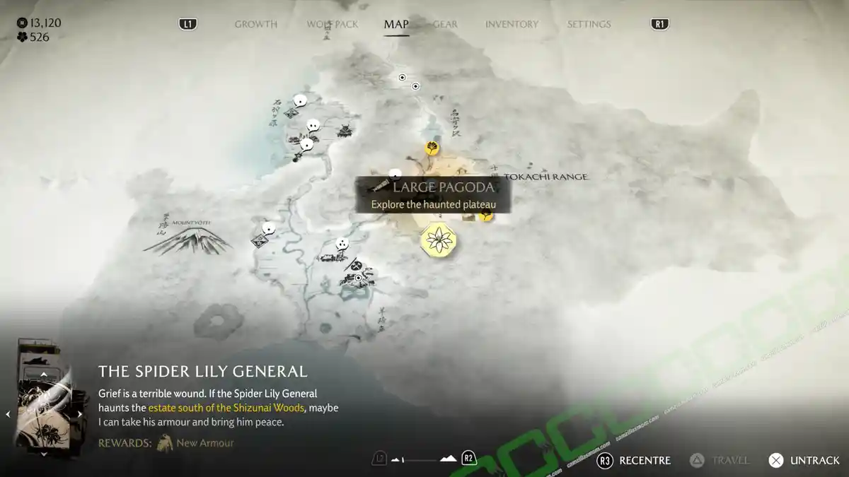 To get this armor, go to the southern part of the Tokachi Range region. When you find a Mysterious Gate, approach it, and Ugetsu, the Storyteller, will appear to start “The Spider Lily General” quest.