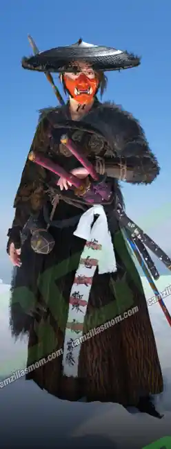 -> With Lone Wolf’s Straw Hat and Onryo Mask