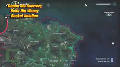 The tomb is east of Zona Dos at Kunka and southeast of Prospero Astillero at Delta Rio Wanay. This is where the socket is.
