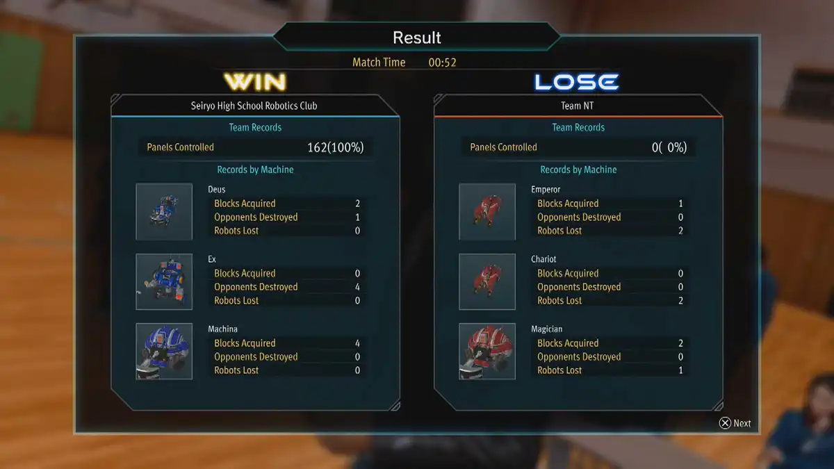 Head to the MRC and talk to Amasawa. After the chat, return to the Robotics Club Room. To prepare for the next match, you need to grind the practice matches. Especially the “CLOSE CALL” match, since it seems to be the only place to get Super-durable Rubber. This match plays very offensive. I made the best experience to win to equip my other 1 AI robots with a sniper rifle and the other 2 with the Gorilla Hammer.