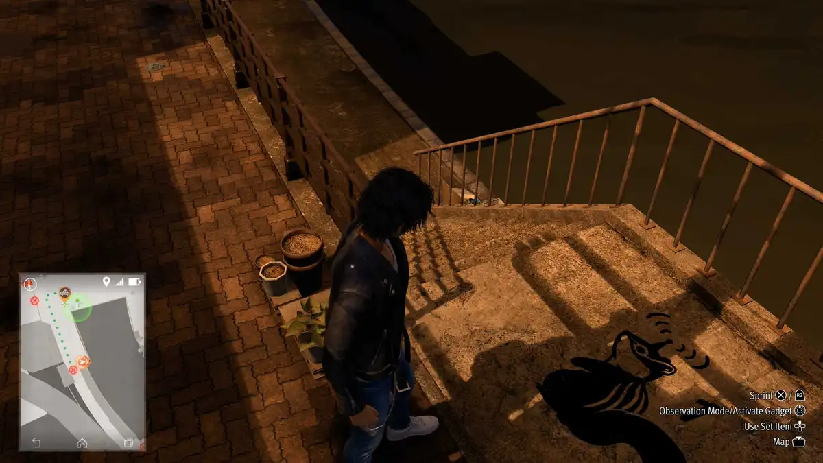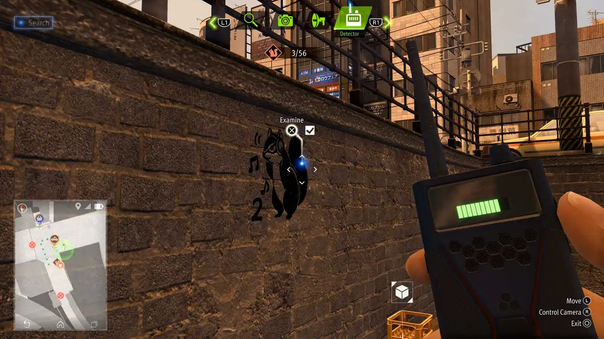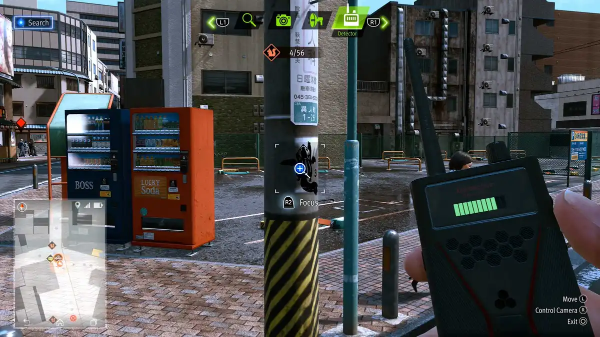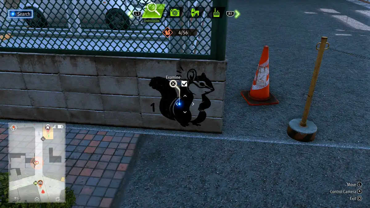 Take out the Detector and cross the street to the next lamppost. There’s a flying squirrel. Take out the drone and pick up the reward on one of the lights.