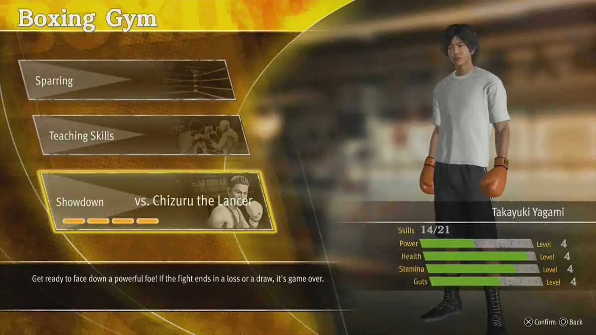 Back at the Boxing Gym, ask Todoroki about the Genbukai. Now there are 3 fresh sparring partners to train with. Just the right amount you need for the next fight. Then, you have to defeat Sakuma aka Chizuru the Lancer in a match.