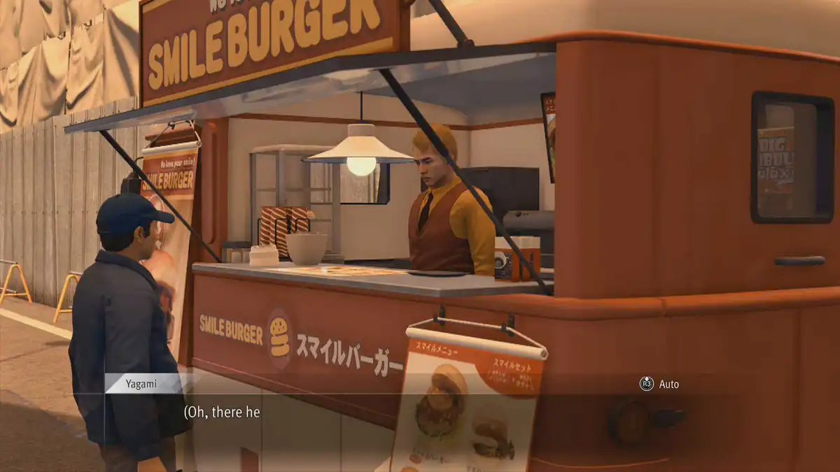 After the next cutscene, check on Oshikiri at his job. Go to the Smile Burger Food Truck in the northwest of town. Grab a meal there and talk to him. Then, return to the gym.