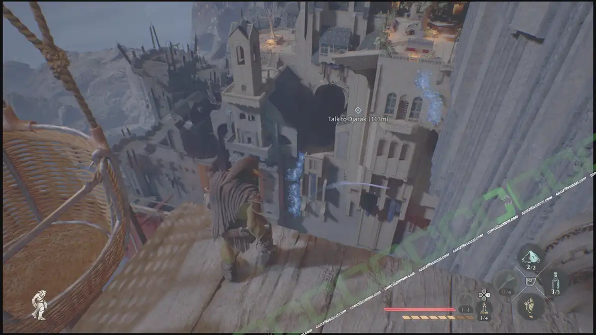 There are a couple of paths you can take to reach Djarak. The best solution for me is to travel to the Garrison balloon, then glide down to the crystal wall and climb up.