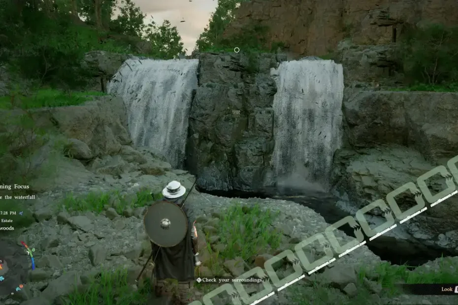 Complete Maintaining Focus in Crimson Desert by observing the southern waterfall and reporting back to the researcher to unlock new research.