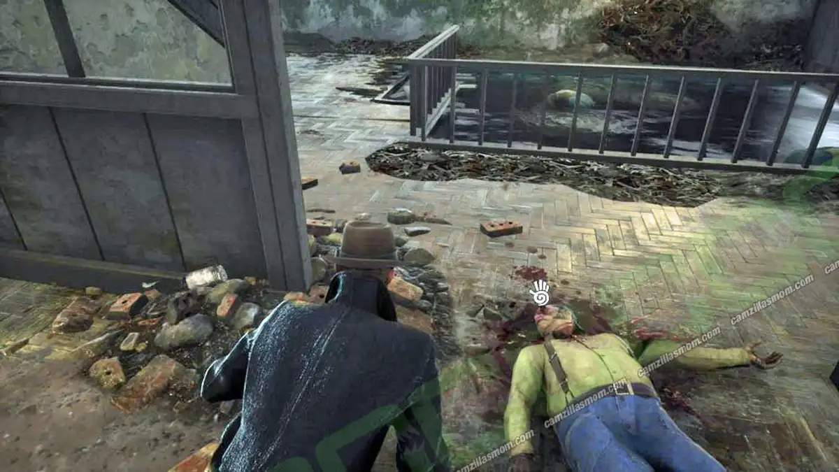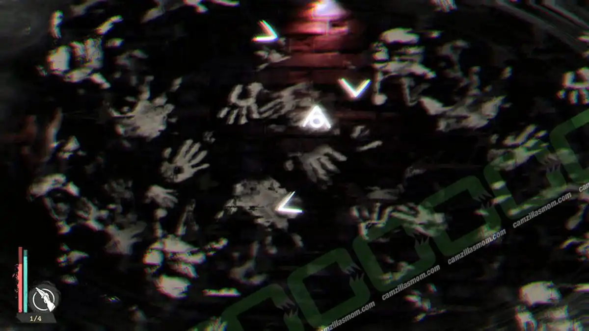 Before you climb up to follow the bird, hit the lock on the door for easier access. Then climb up by the table to follow the bird. Fight the monsters there. Then look at the symbol on the wall in the toilet. Go to the tools on the table, near the dead body. Look at them, then activate Mind’s Eye, so you can see the vision of the corpse.