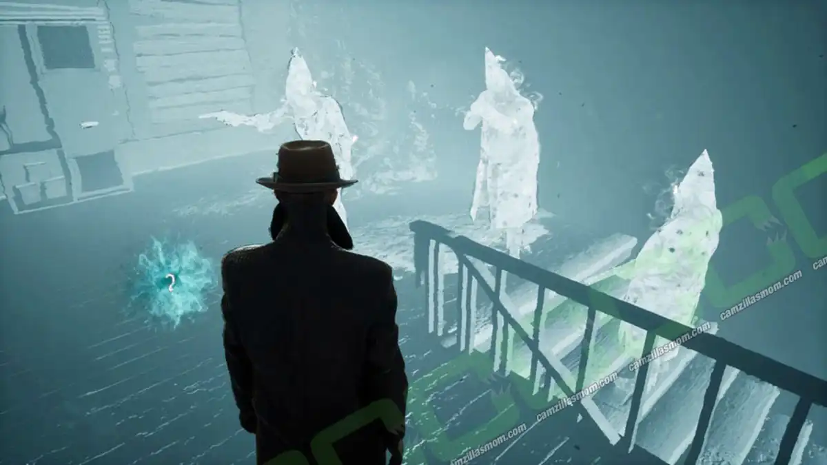 Activate Mind’s Eye and follow the ghostly figure upstairs to the evidence.