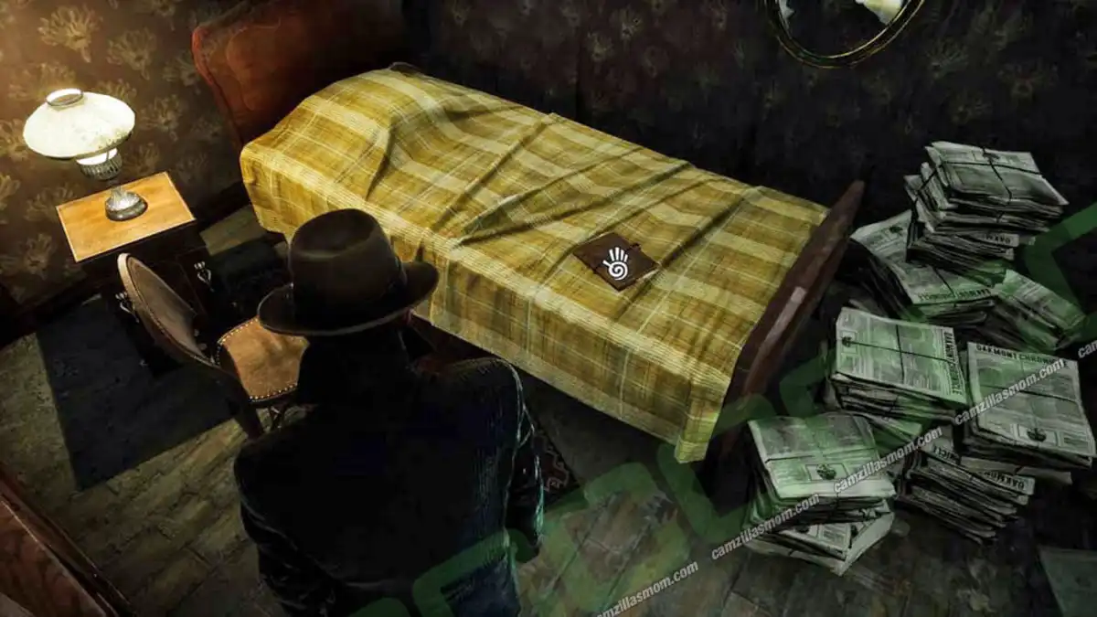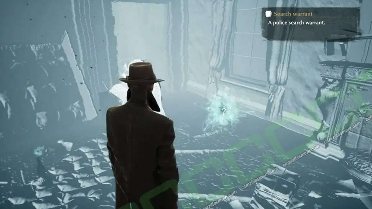 When finishing “A Delicate Matter” and accepting the “Through the Looking Glass” Case, Mr. Throgmorton will give you the Key from Francis’ Study. It will open the door upstairs. Inside the study, activate “Mind’s Eye” and approach the box. It’s a hidden safe. Pick up the document hidden inside.