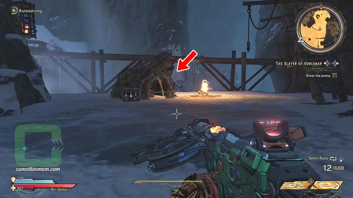 This Lore Scroll is at Mount Craw –“Tribute Way”. It’s at the arena that you need to go to for the Side Quest “The Slayer of Vorcanar”. There are some huts in front of the entrance gates. The scroll is behind one of them.
