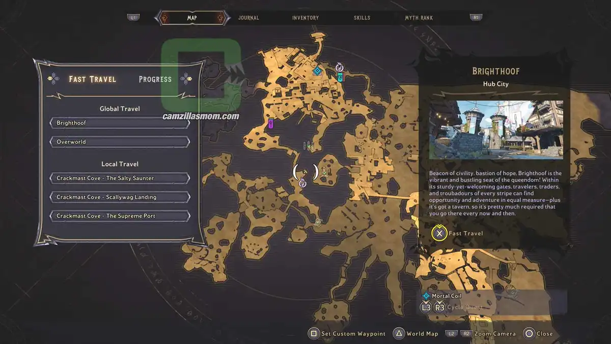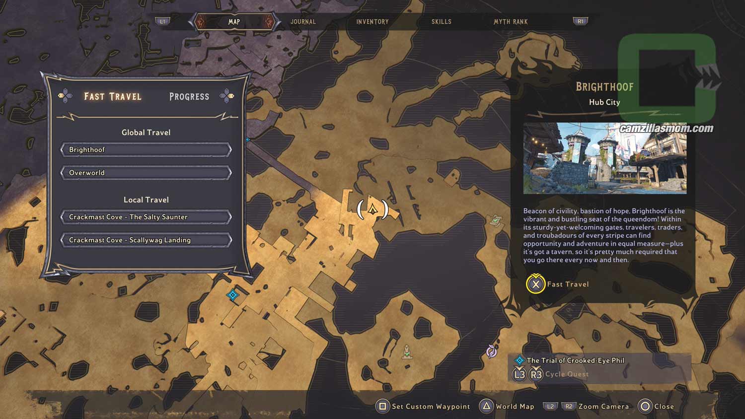 At the top of the “Scalliwag Landing” settlement, there is a nice viewpoint, overlooking the valley. Here, on top of a box, is the Scroll.