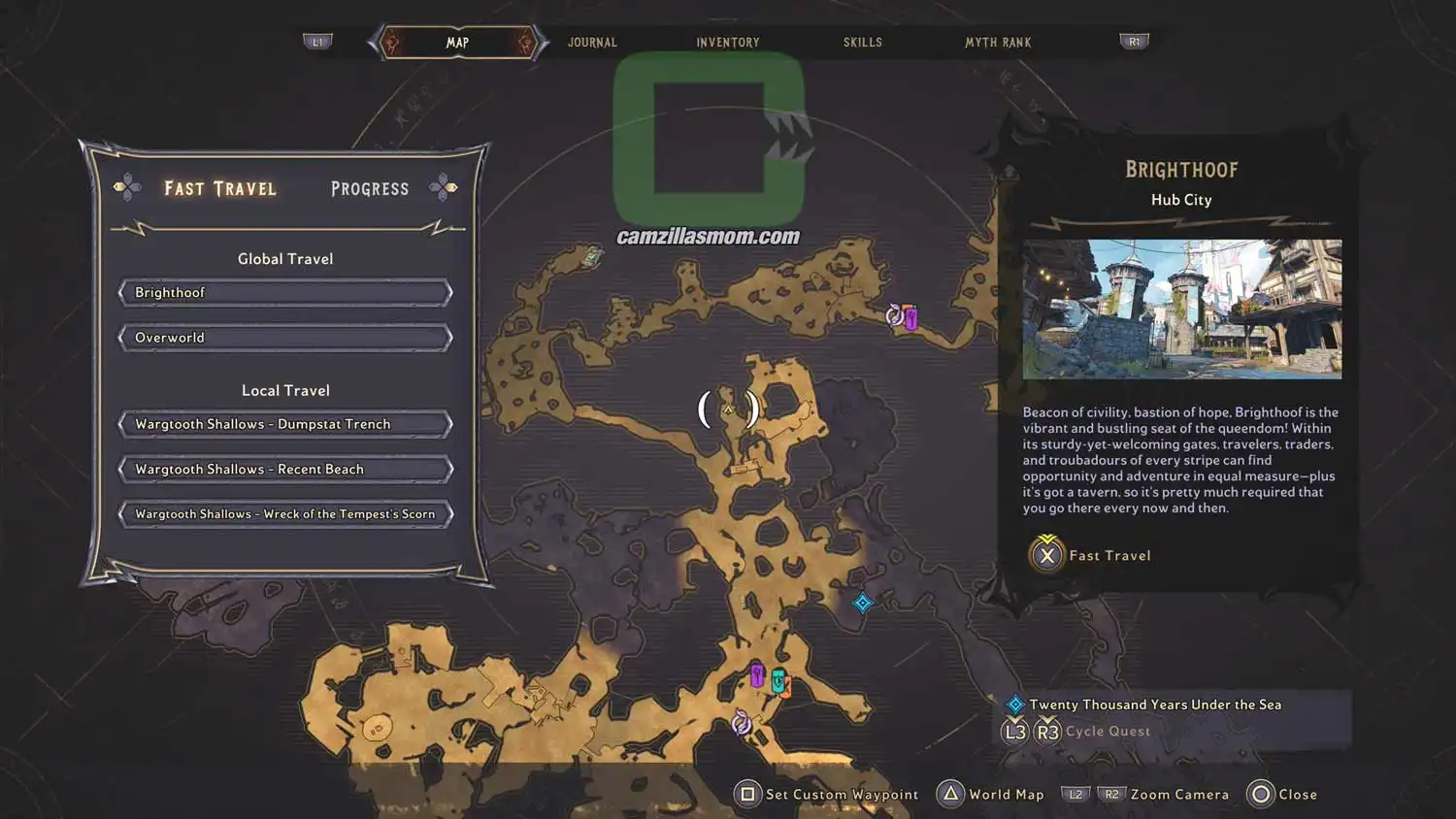 Near “Dumpstat Torch” are some ancient ruins, where you can pick up a Side Quest that leads you to the Temple of Grissnissak. Here, near a waterfall is the Lore Scroll.
