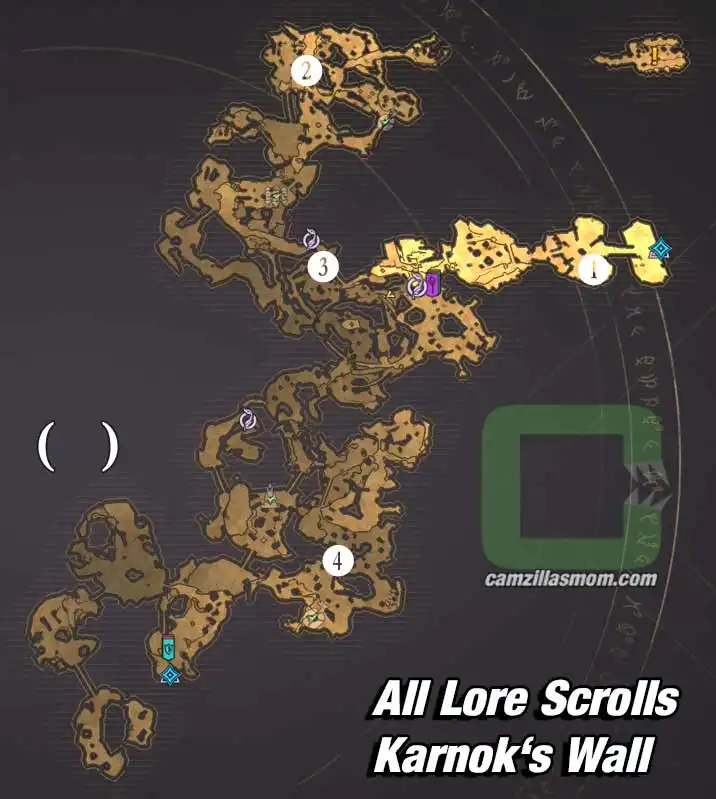 At Parched Lands, at the northern exit of Karnok’s wall is this scroll.