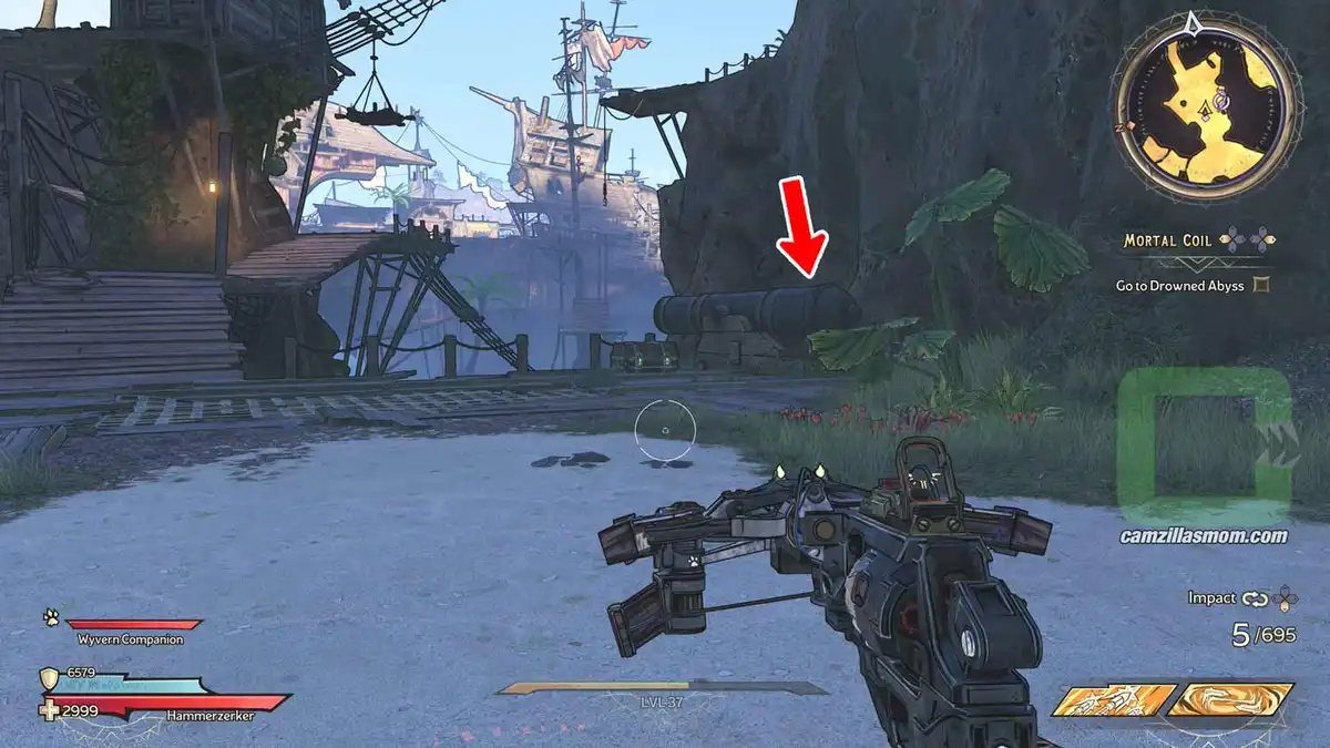 Just by the “Scalliwag Landing” Fast Travel Point behind the cannon.
