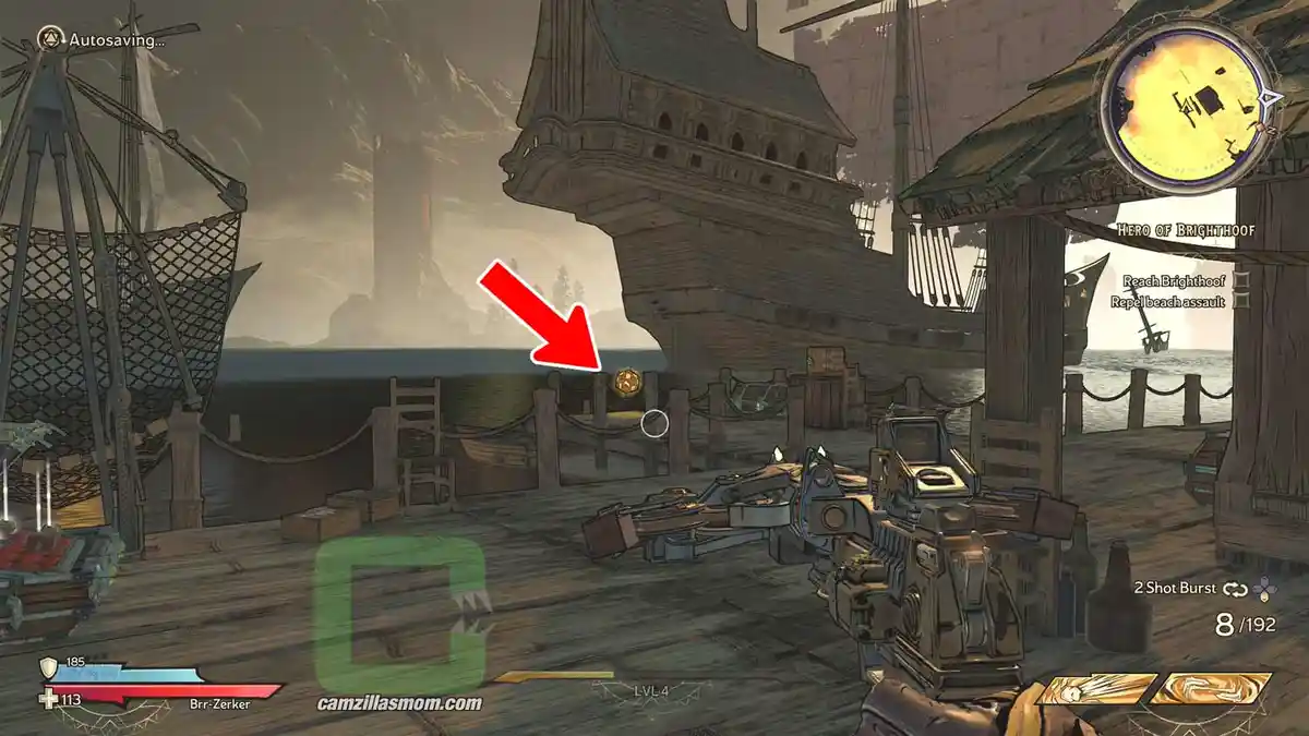 In “Hero of Brighthoof”, You have to enter Queen’s Gate. The first area in Queen’s Gate is the Harbour/Beach area called “Kindness Landing”. It is here, by the water, where the first Lucky Die is.