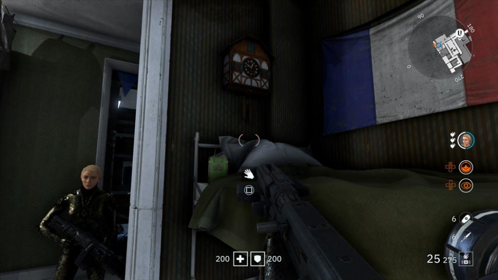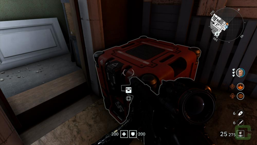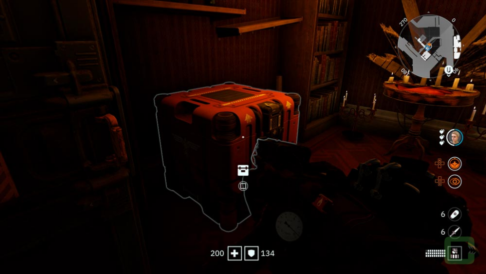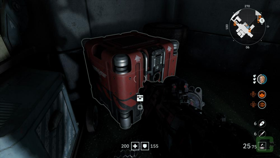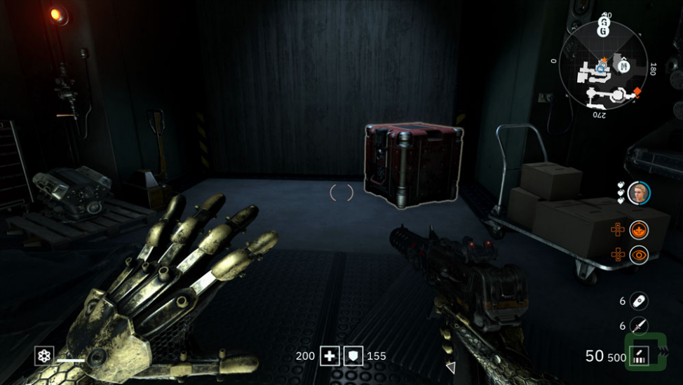 Once inside, use the Crush ability to destroy the blocked entrances and go through the vent into the box room.