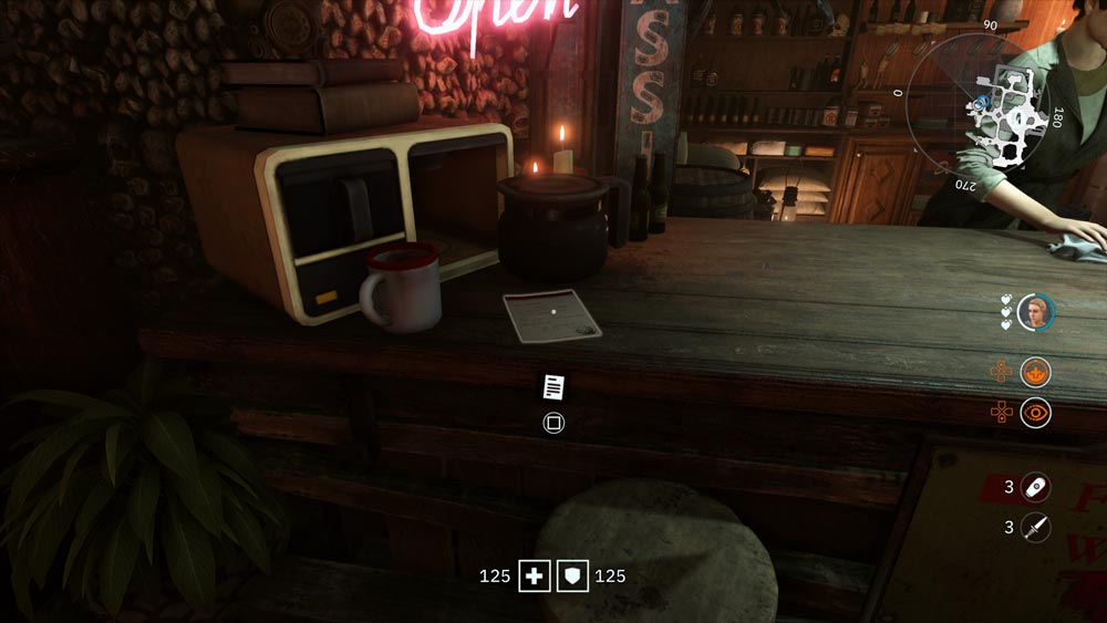 This note be found at the main floor of the catacombs. It's in the Café / Restaurant on top of the bar.